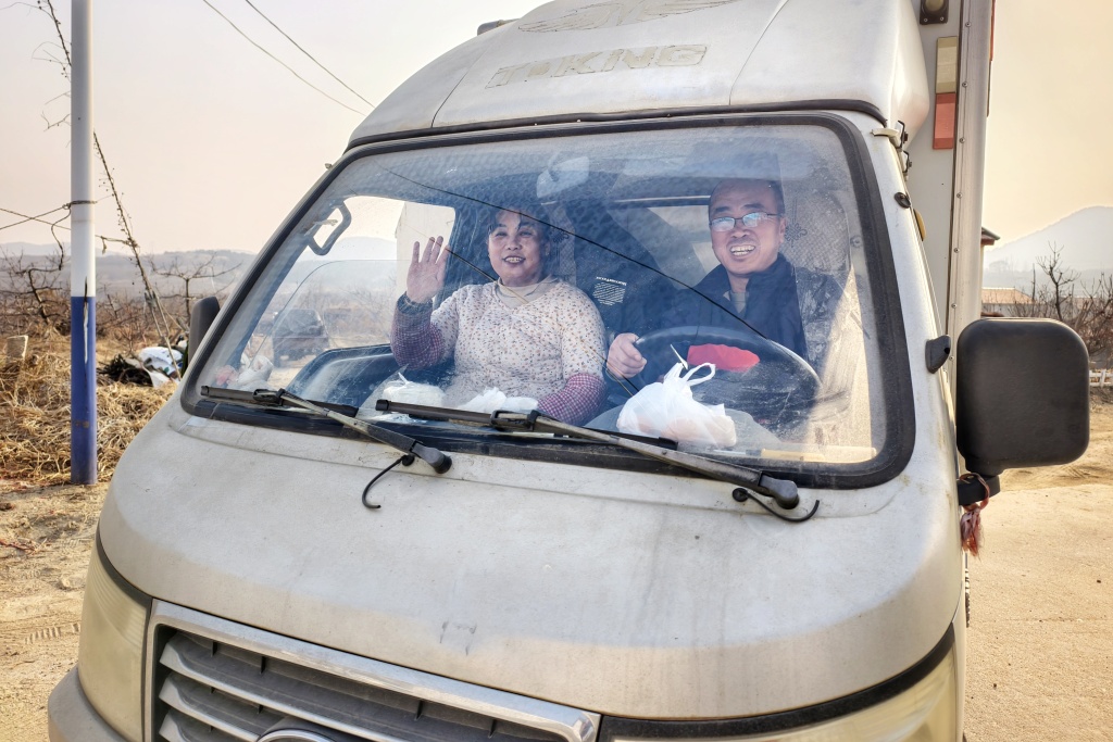 宴席结束后王卫州和妻子将收拾干净的灶具桌凳全部装回小货车,准备回家。