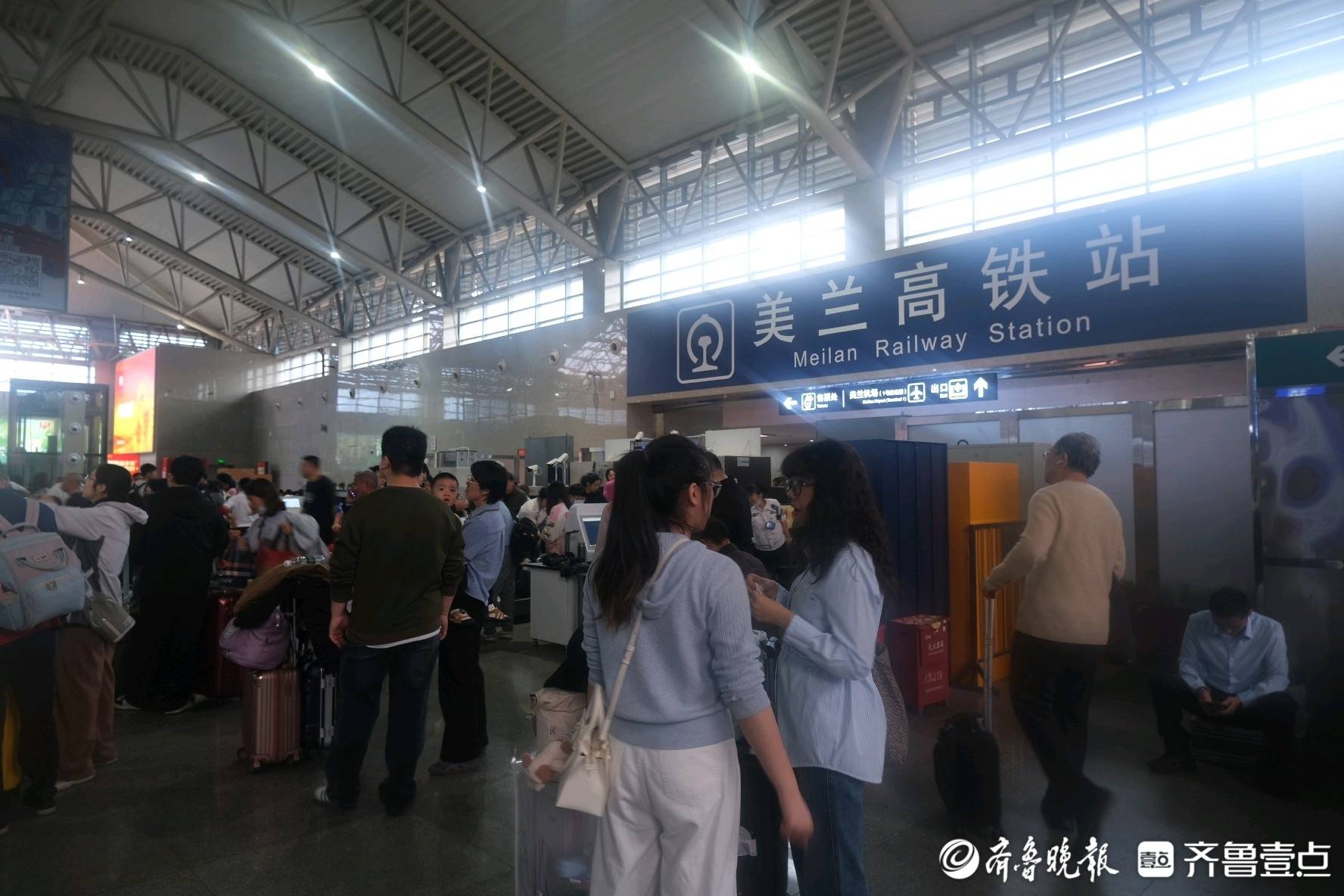 从美兰机场里步行十分钟就到了高铁站。过安检时候听见两个工作人员聊天,半开玩笑的口气:“天啊,人那么多!”