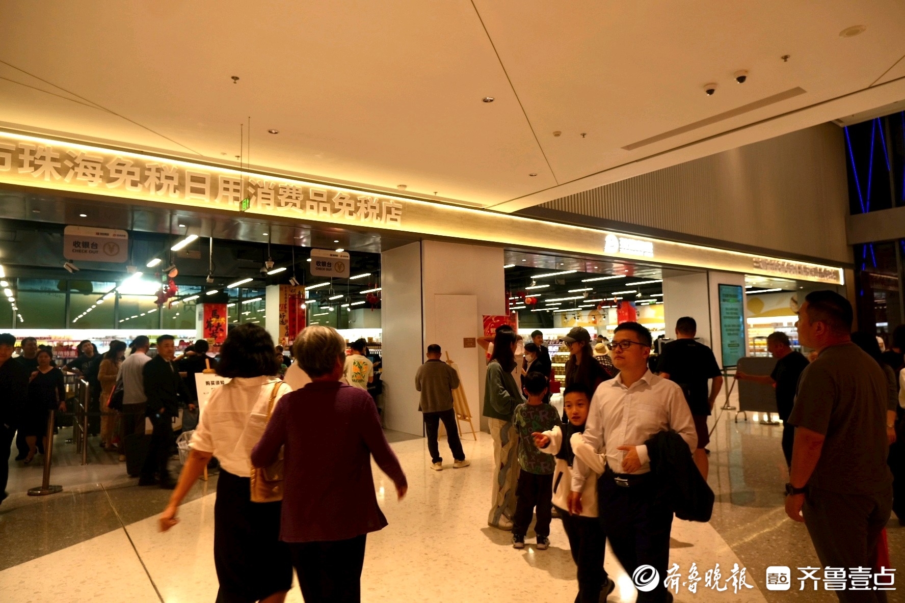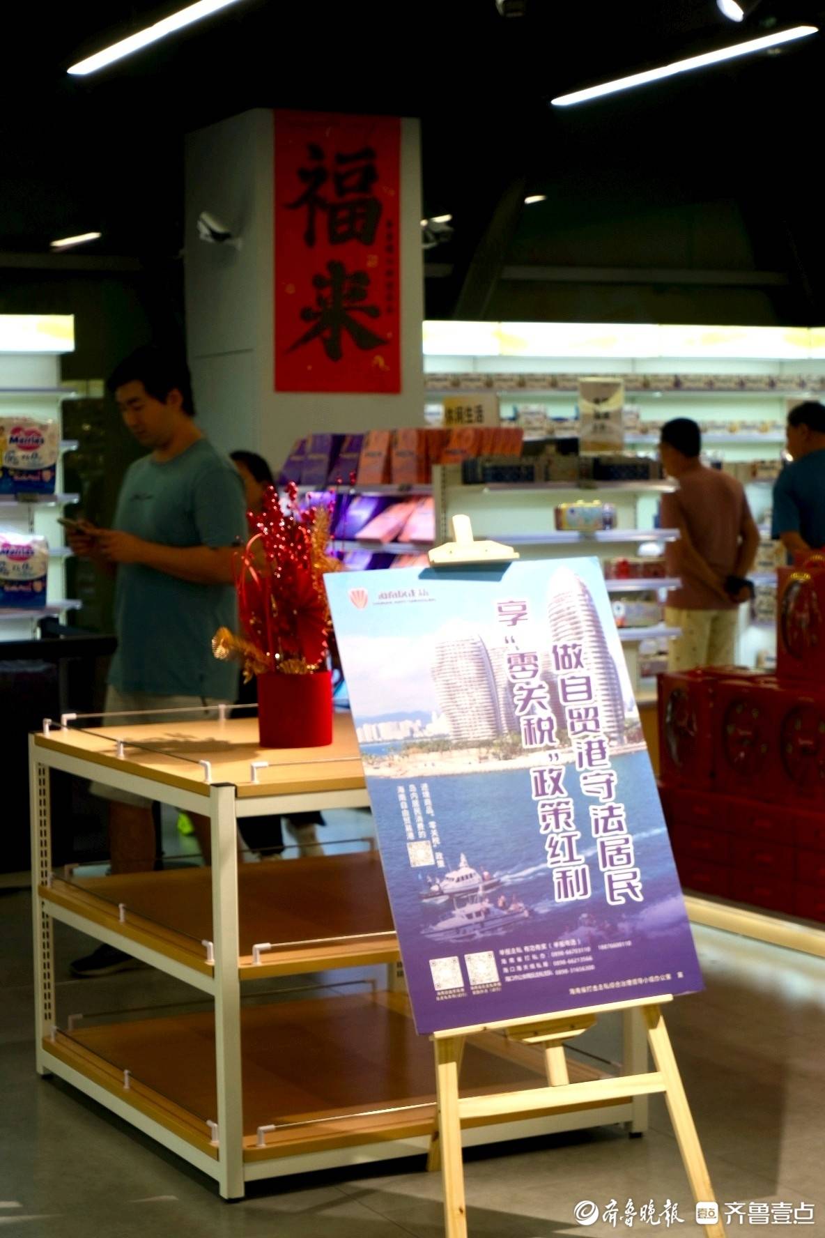 我到达时已是晚上九点,但日用消费品免税店内依然人流如织,工作人员们正在忙碌地铺货、收银。