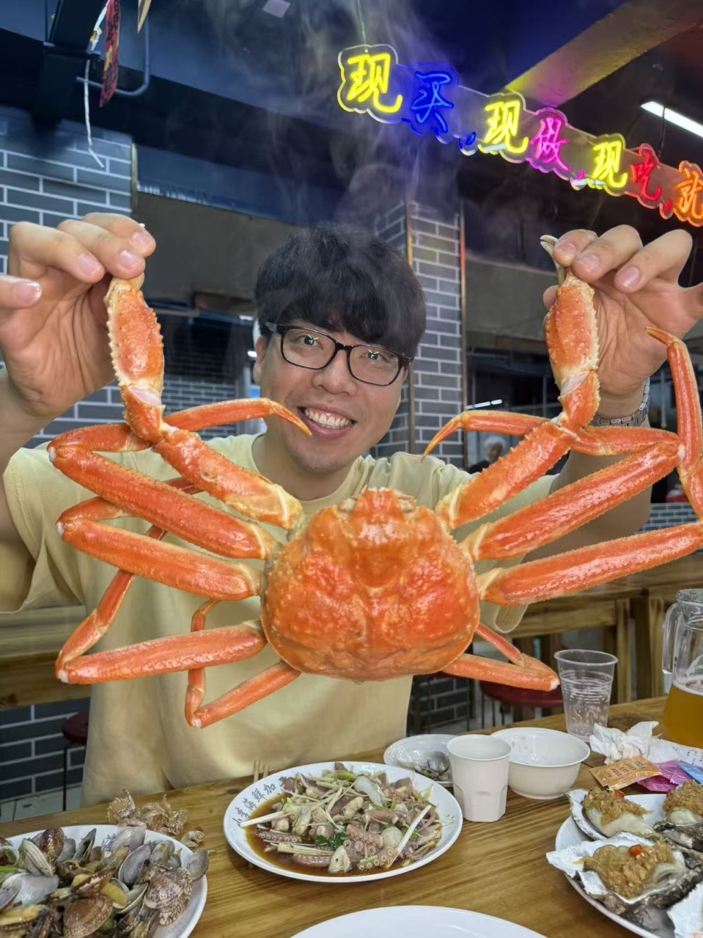 在娜娜的影响下,最先“爱上中国”的,是丈夫俊熙的整个家庭。她特意带着公婆回到青岛,不去高档连锁餐厅,只带他们去自己从小吃到大的老地方:西镇、中山路的电烤肉、炸串、臭豆腐、平价盖饭,还有充满烟火气的集市小店。在她看来,这些接地气的美食,才最能代表青岛。