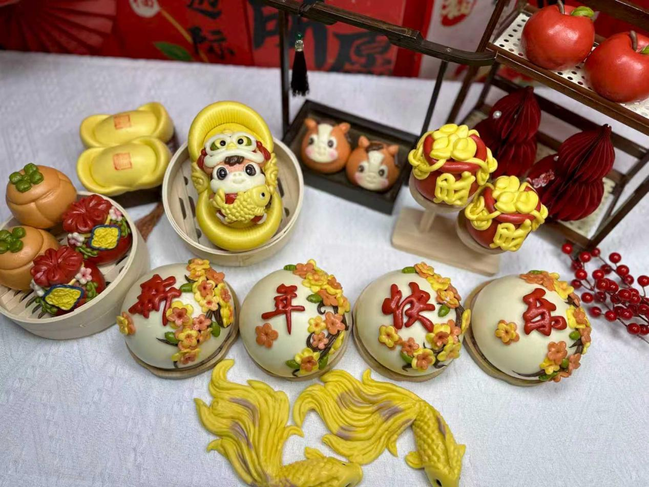 为了让老手艺跟上新潮流,任万青每年都会紧扣生肖主题创新设计。她敏锐地捕捉到年轻人的审美变化,跳出了传统框架,大胆采用卡通化造型。更难得的是,这些花饽饽不仅好看,还要好吃、健康。