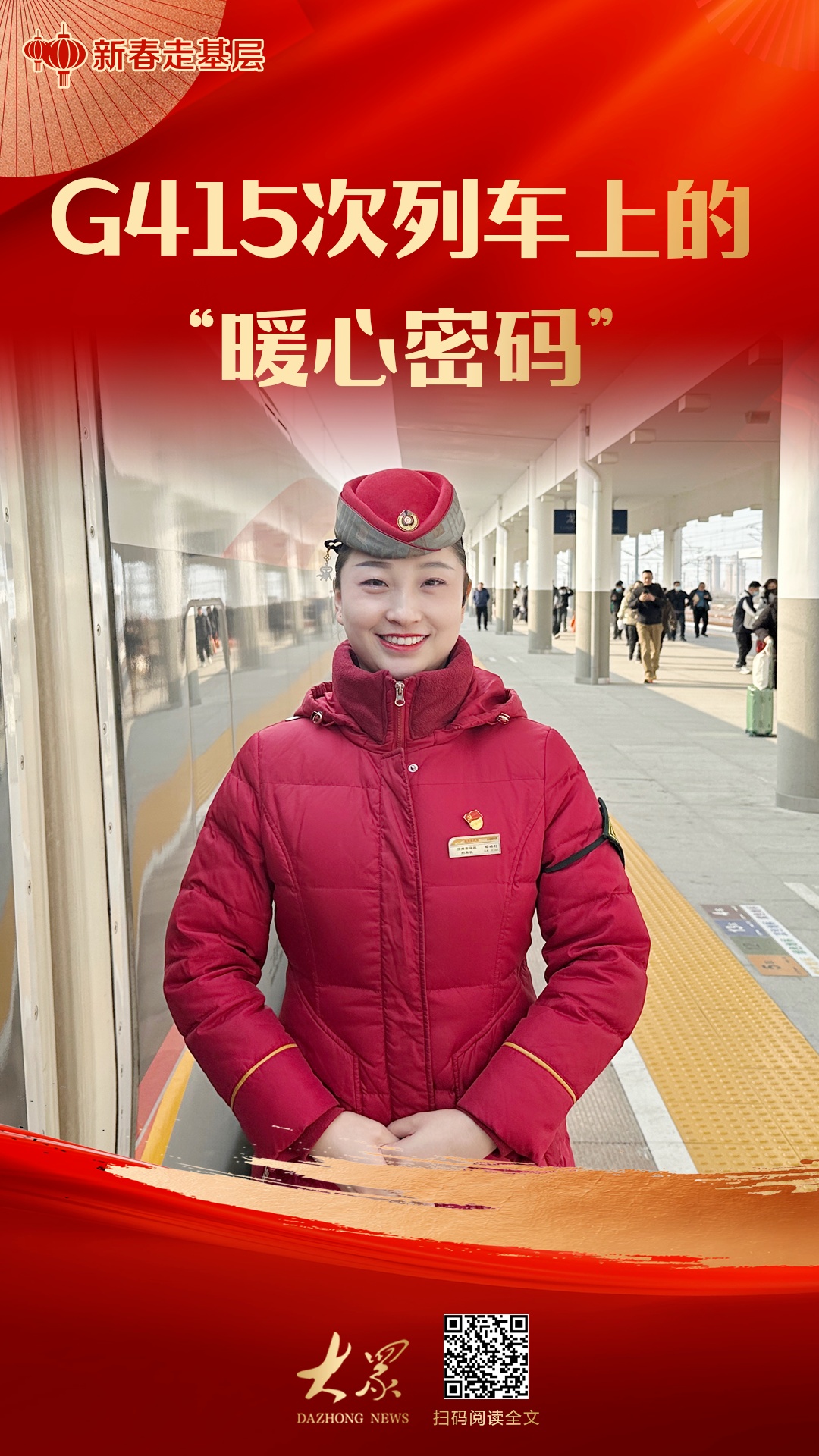 2月15日早上7时,济南东站,G415次列车长邵瑞利正逐一检查设备设施,为发车作最后的准备。这是她担任列车长8年来,在列车上度过的第8个春运。