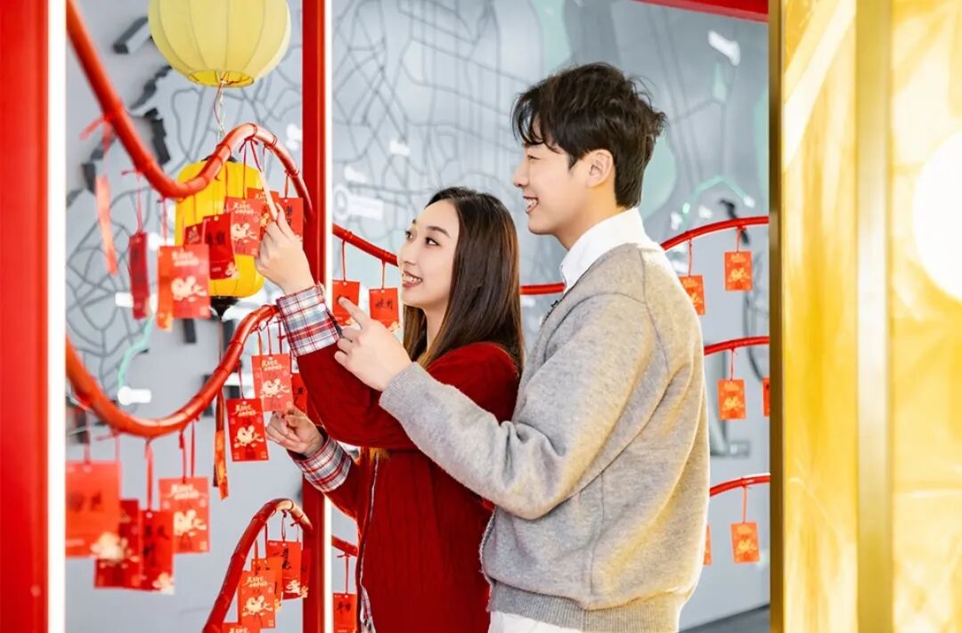 直上369米,在云端解锁过年的新姿势,手机感应藏身云端的瑞马,集齐八张福卡换新春好礼;转动走马灯,许愿福随轮转。