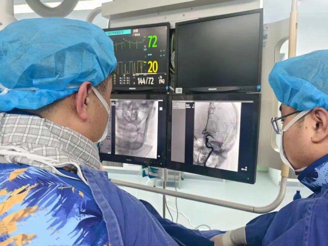 “需要取栓!”除夕夜,医师群里突然闪烁一条消息,一名74岁男性患者入院时嗜睡、言语不清,右侧肢体偏瘫,诊断为左侧大脑中动脉闭塞性脑梗塞,医护人员给予患者溶栓治疗后症状依然没有好转,神经内科副主任李鑫查看患者病情和影像结果后回复“可以取!”“马上到!”随时待命的丁健副主任医师和孙岩医师立即响应,一场和时间赛跑的救治随即展开。急诊神经内科、神经内科病房、介入手术室、麻醉科以及神经内科介入医护团队各司其职、通力协作,患者大脑中动脉成功再通,而此时已是凌晨。