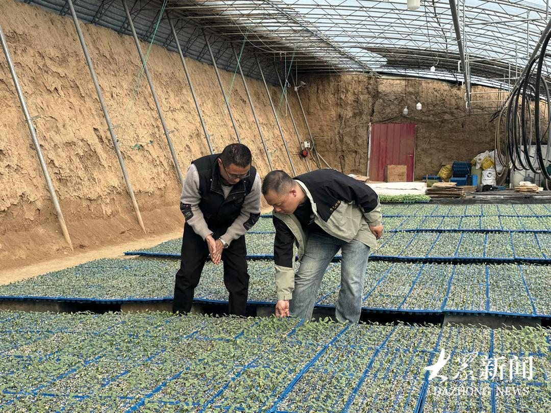 大年廿九(除夕)下午,寿光两位新农人正在高唐县崔堂村的育苗棚内查看苗情。