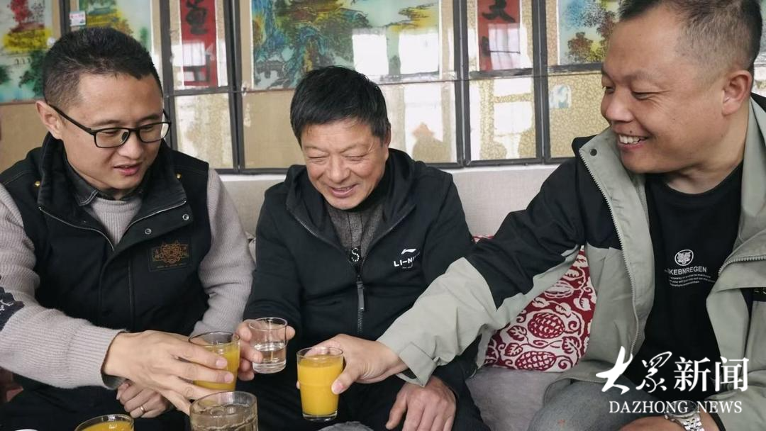 两位寿光新农人被崔堂村村民刘子德(中)热情地邀请到家中吃饭。