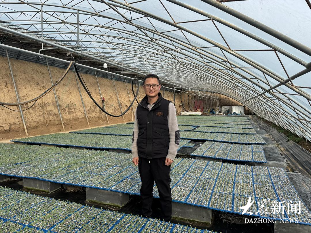 寿光新农人杨靖坤在高唐崔堂村育苗棚。他打算在三年之内实现每年育苗3000万株的目标。