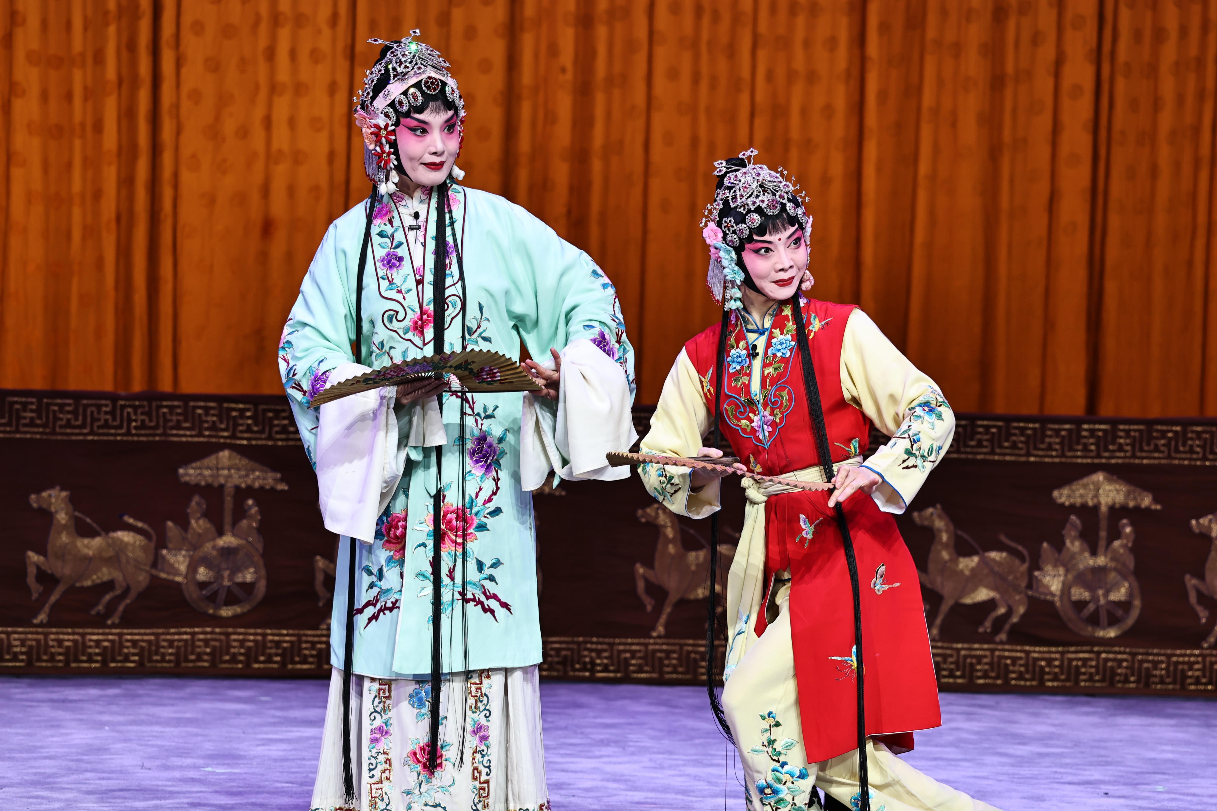 东风拂面春意暖,骏马奔腾送福来。大年初二下午,泉城的街头年味正浓,济南剧院的主剧场里已是座无虚席,人人脸上挂着喜气洋洋的笑容。舞台上,山东梆子《雷振海征北》《扈家庄》与柳子戏《玩会跳船》《张飞闯辕门》轮番登场。每场演出三十分钟左右,剧情紧凑,唱念做打俱佳。不少观众是全家出动,从下午两点开始连看多场,直呼过瘾。据悉,这是该剧院联合山东省柳子戏艺术保护传承中心倾力打造的“金马送福”非遗雅集,作为公益文化专场,面向市民免费开放。“以前过年总忙着走亲访友、聚餐吃喝,今年来剧场沉浸看戏,既能感受传统艺术的魅力,又能和家人好好相伴,这样的年才更有滋味。”市民张阳高兴地说。