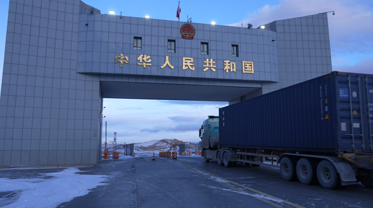 确认一切无恙,古丽加孜然只简单叮嘱了一句“注意安全”,便目送物流车从两国矗立的界碑间驶离,车影渐隐。