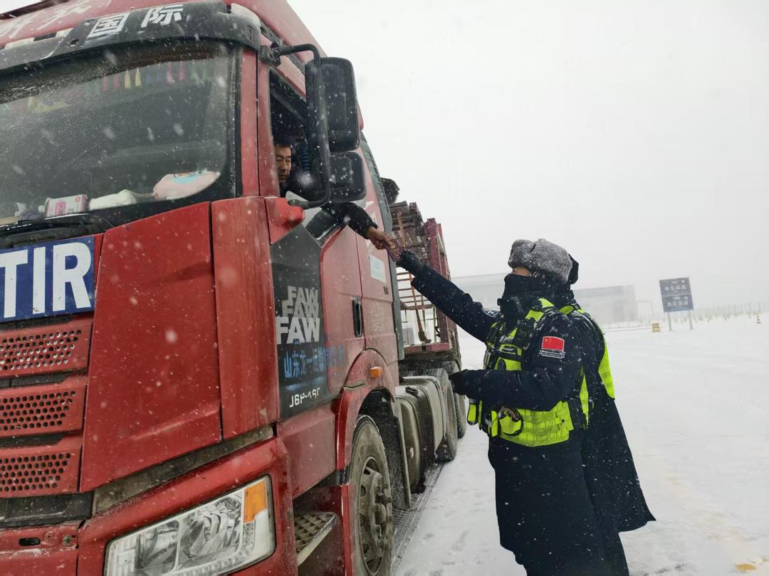 又送别一位“冰山来客”,霞光溢到雪山脊线,车流渐疏。哈着白气聊起天,身形高大的教导员李振被一身藏蓝警服衬得挺拔如松,他惊喜地自报家门:“我也是山东人,临沂费县的!”继而,他掰着手指数了数,在这西陲口岸处,竟有32名籍贯为山东的民警。