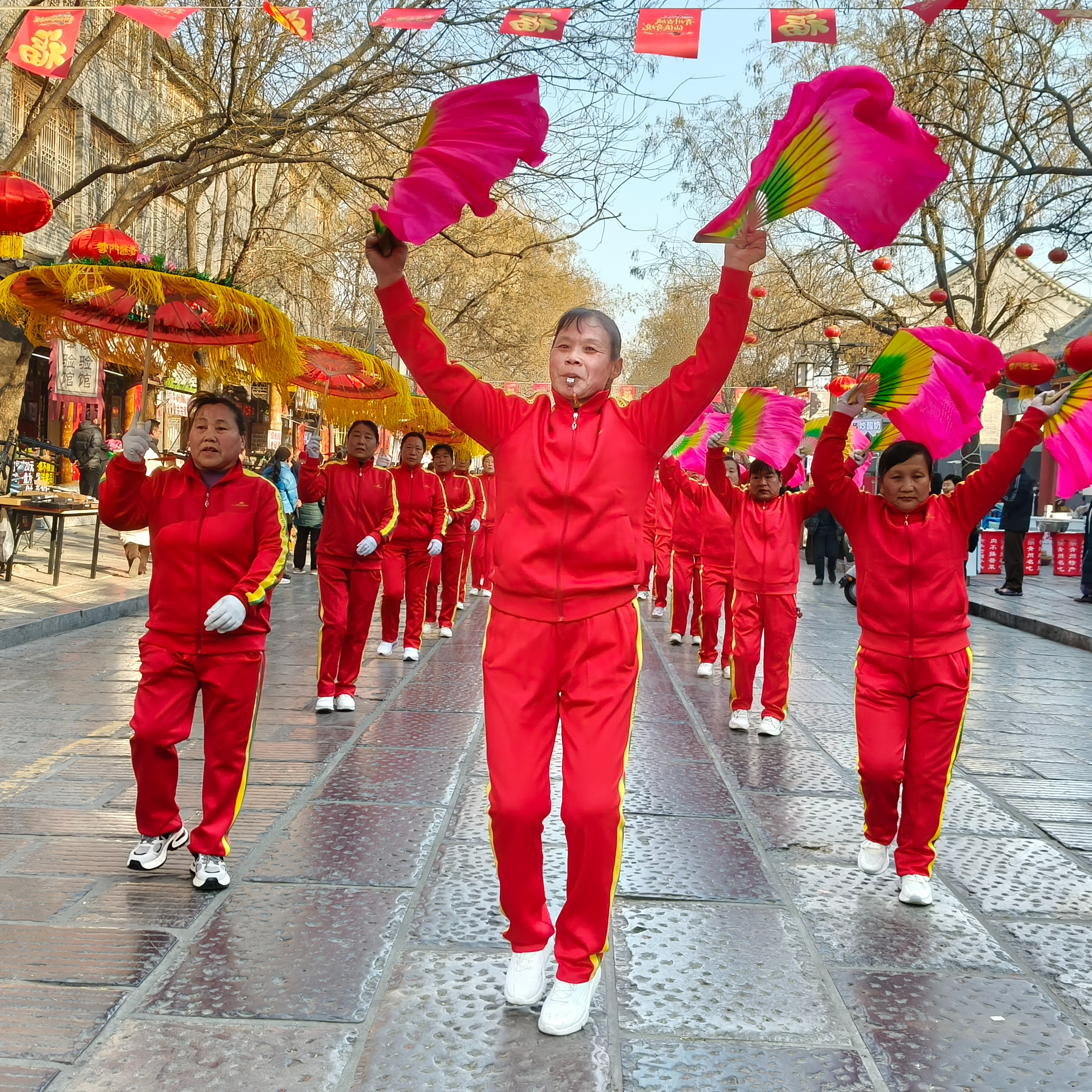2月19日,农历正月初三,上午九时,潍坊青州古城里已是人潮涌动。云门山街道十字村锣鼓秧歌队的队员们踏着欢快的节奏扭起秧歌,引来游客围观拍照。舞龙队伍穿梭于街巷之间,彩龙翻飞,灵动炫目。而“老汉背媳”的民俗表演,则以诙谐幽默的动作引得众人笑声不断。