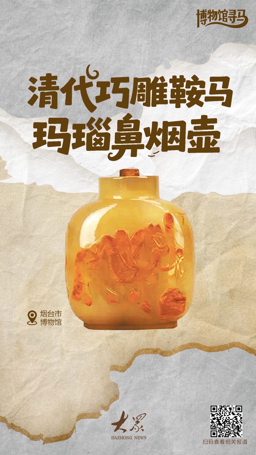 烟台市博物馆有一件清代巧雕鞍马玛瑙鼻烟壶,高6厘米、口径不过2.5厘米。它以微末之躯,盛纳了古人的风雅与匠心。