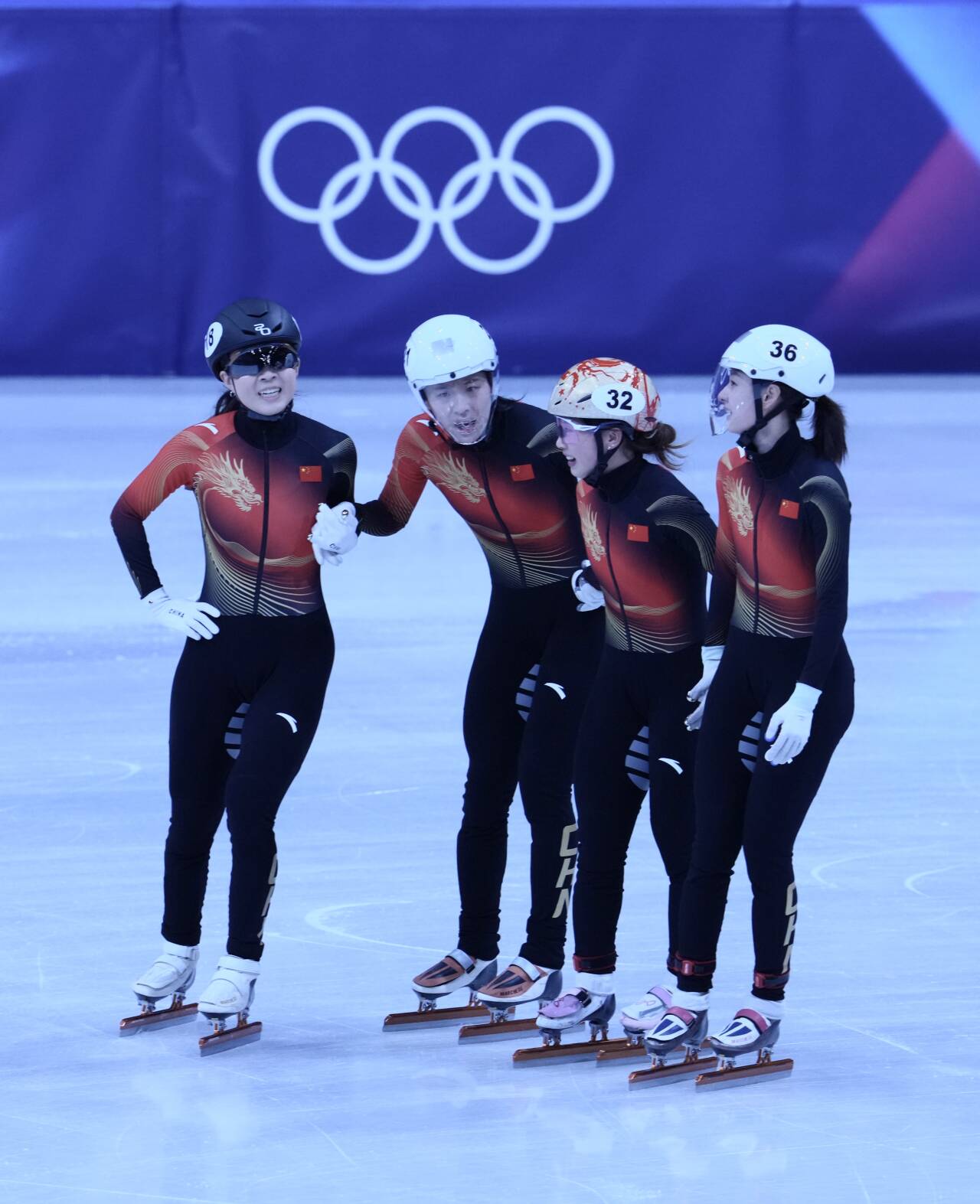 美国队因被判犯规无成绩,日本队第二,法国队第三。按照赛事规则,中国队最终以总成绩第五名结束本届冬奥会女子 3000 米接力征程。