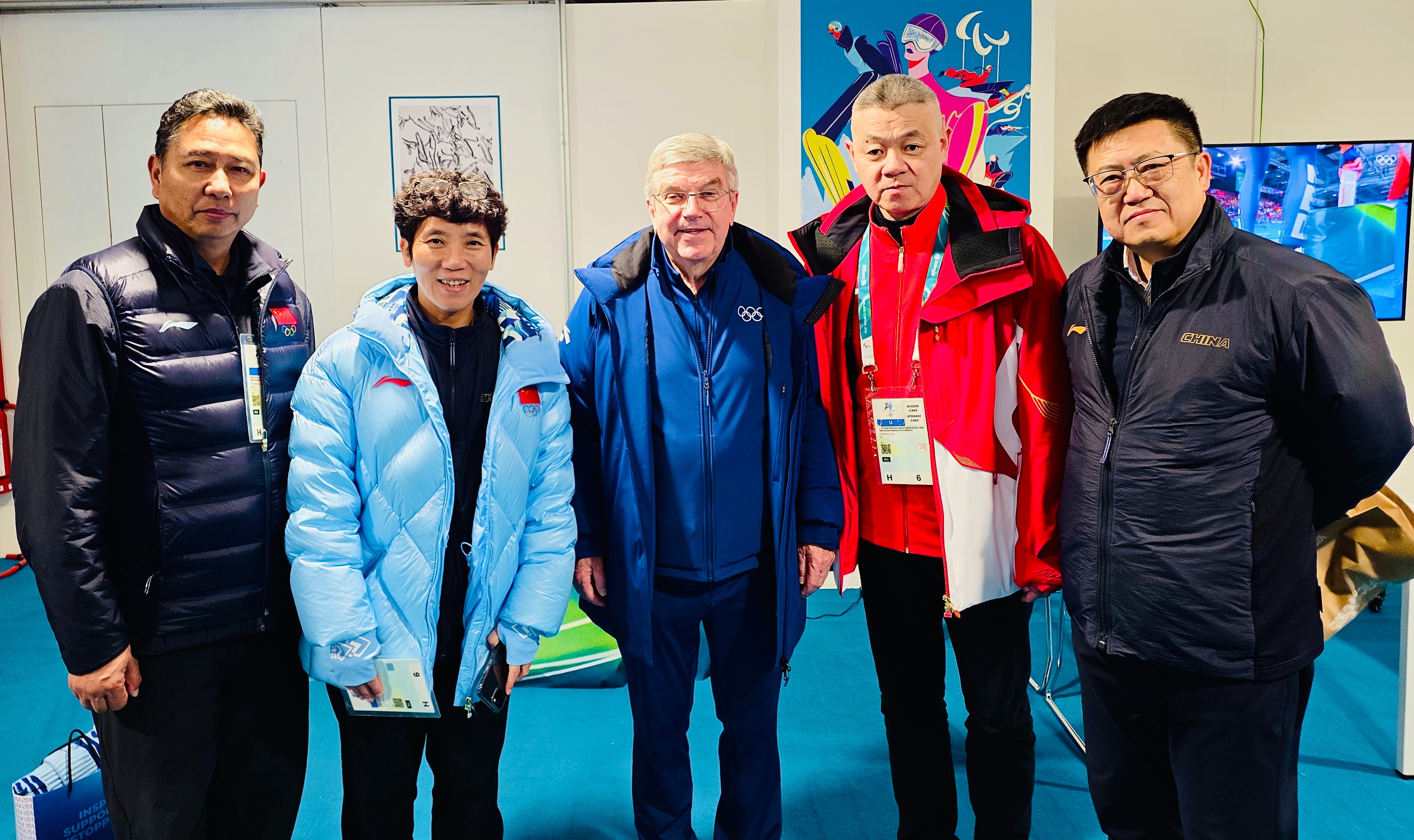 中国代表团观礼嘉宾热情回应巴赫,部分嘉宾与其合影留念。