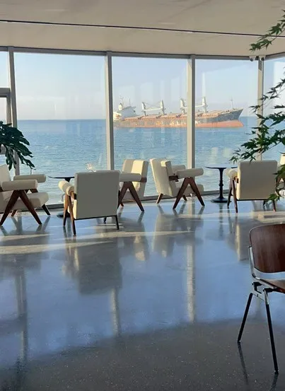 坐在玻璃窗前,点一杯香醇的咖啡,看海鸥绕着巨轮盘旋,这种放松的感觉,或许正是现代人最需要的情绪治愈感。