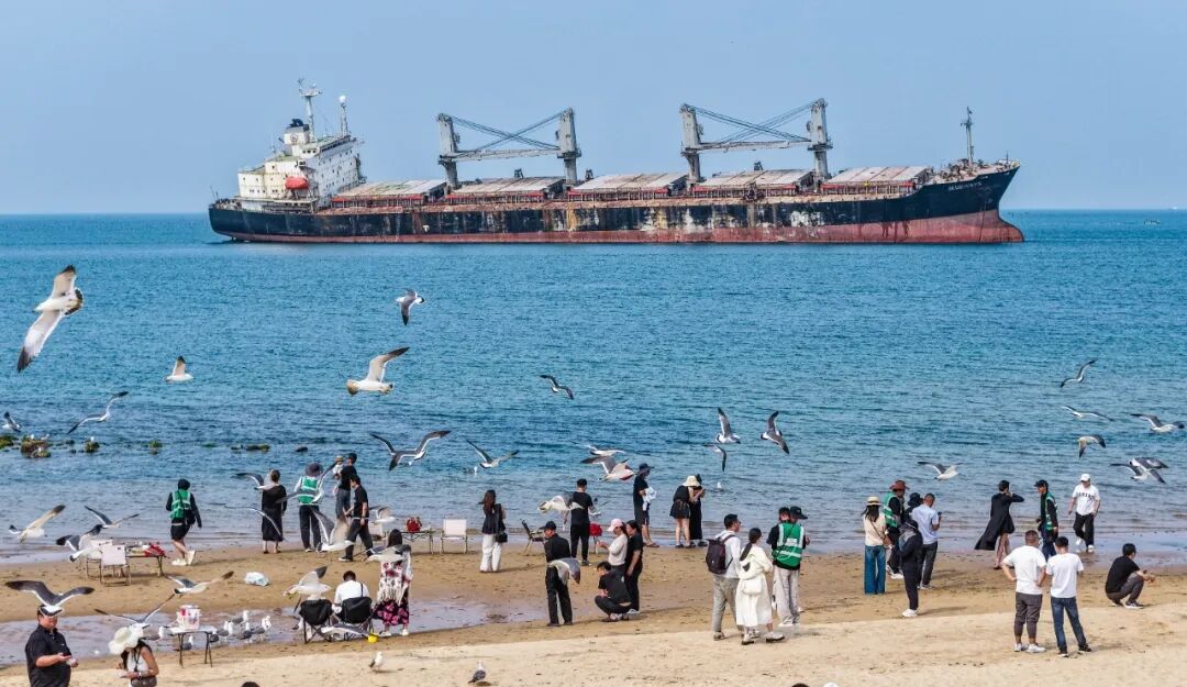 这艘搁浅的巨轮,仿佛有一种魔力,不仅没有随着时间的流逝而被遗忘,反而在每一个日出日落、潮起潮落中,愈发显得神秘而迷人。它连续多年火爆全网,热度不减,已然成为了荣成乃至整个山东海岸线上的一颗璀璨明珠。