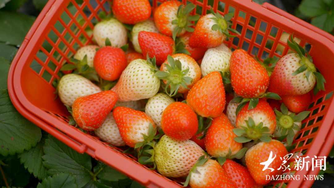 我国自主研发的红色草莓“宝珠”、白色草莓“脆玉”,风味浓、香气足、口感独特;