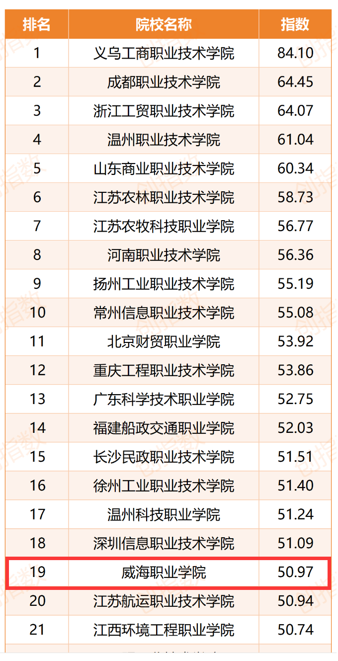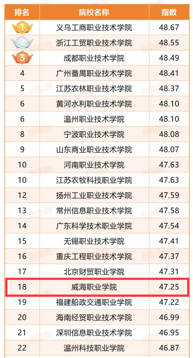 近日,“2025年中国高职(专科)院校创新创业教育指数榜”揭晓,榜单以全面客观的数据分析,系统展现了高职(专科)院校在创新创业领域的成就与综合实力。威海职业学院在榜单中位列全国第19名、山东省第2名,这也是威职连续三年进入中国高职(专科)院校创新创业教育50强榜单!
