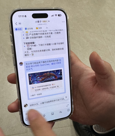 他向记者展示了手机上的操作界面。他把一篇技术大咖的“养虾攻略”直接转发给自己的“龙虾”让它学习,它就能自主配置插件、建立记忆系统。“它不是一个即插即用的工具,而是一个需要培养的助手。这个过程需要时间,也需要耐心。”