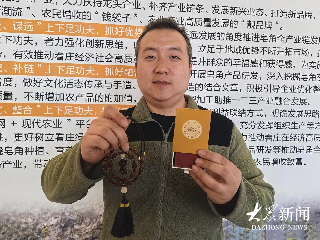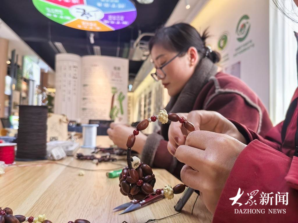 就连以往不起眼的皂角籽,也在非遗传承人的巧手里“变废为宝”——天然温润的皂角籽搭配传统绳结技艺,开发出手串、车挂、包挂等文创产品,再融入“和圣”文化典故,成了备受游客青睐的伴手礼。