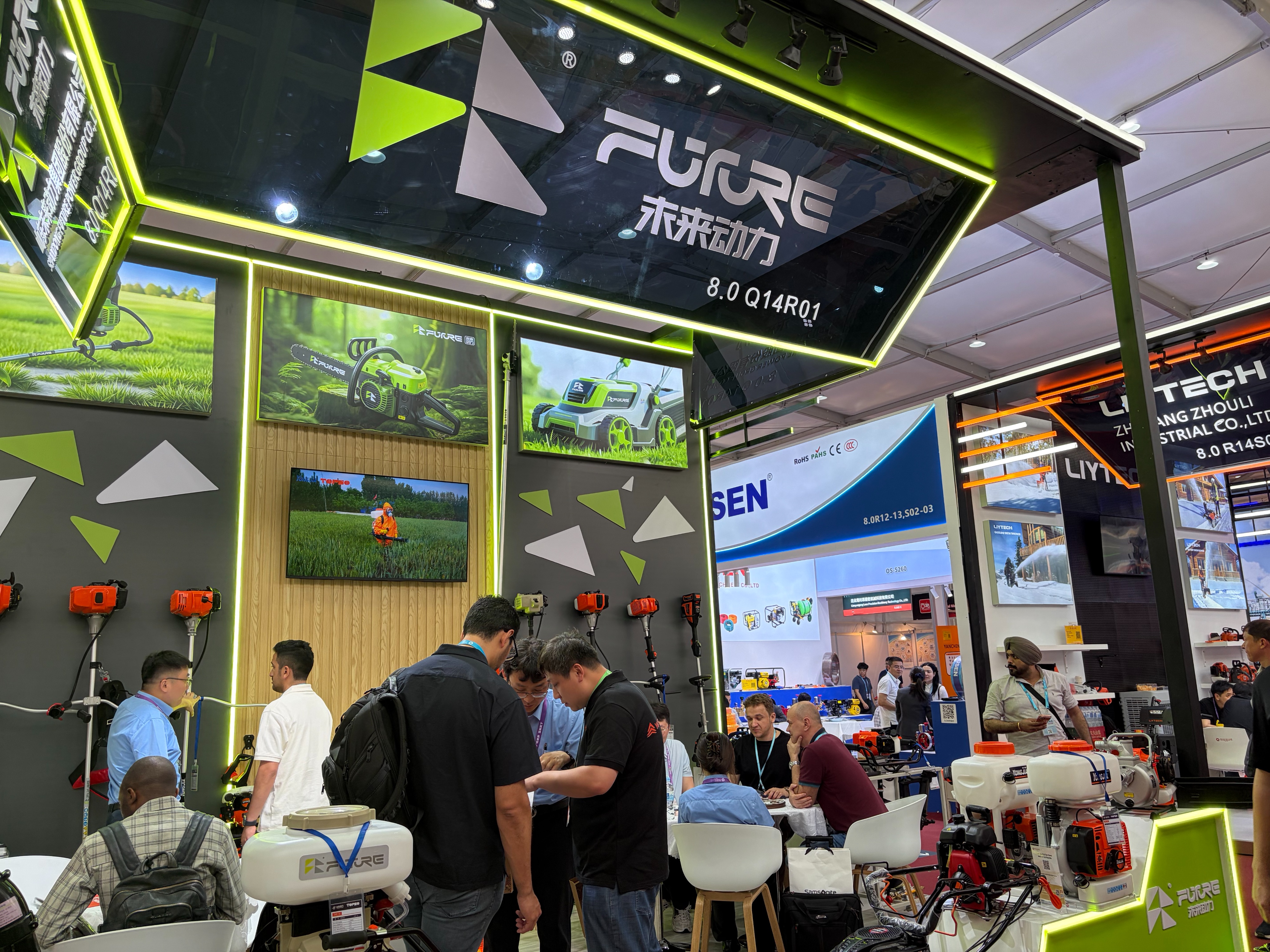 在通用机械及机械基础件展区,山东未来动力集团股份有限公司的展位前,已有10余名外商前来咨询,记者注意到,其中女性客户占到九成。一位来自英国的采购商说,她们是为了一款割草机来的。