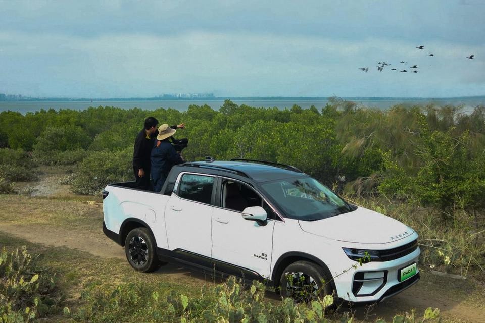 首先,雷达RD6的6.9s极致加速和灵动操控,能够适应热带雨林复杂路况,乘用级全维安全为科考队员全面保驾护航。而国内首创的6kW全场景智能放电,不仅能满足电脑、摄影摄像器材、无人机等工作设备的用电,而且还可以支持做饭、烧水等生活用电,让野外科研也拥有了用电自由。与此同时,雷达RD6自带的轻舟帐篷,让科考队员无需再搭建帐篷,不仅节省了时间,还轻松提升了户外生活品质。更重要的是,作为一款纯电皮卡,雷达RD6零排放的特点,不会对自然环境造成污染,非常适合在国家公园等生态环境中使用;与此同时,雷达RD6不仅没有燃油车的发动机噪音,其电机所采用的“伞频”主动降噪技术让噪音进一步降低,不会惊扰到野生动物,让工作人员可以更加亲近自然、观测野生动物的生存状态。