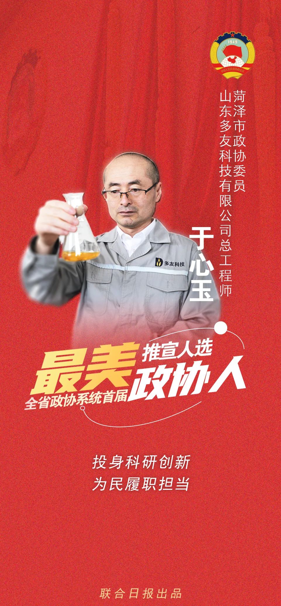 我是政协委员,也是企业技术创新路上的耕耘者。十载有余,两点一线,我在实验室磨砺出科研创新的火花,也在生产一线肩负起一名科技工作者的担当。——于心玉