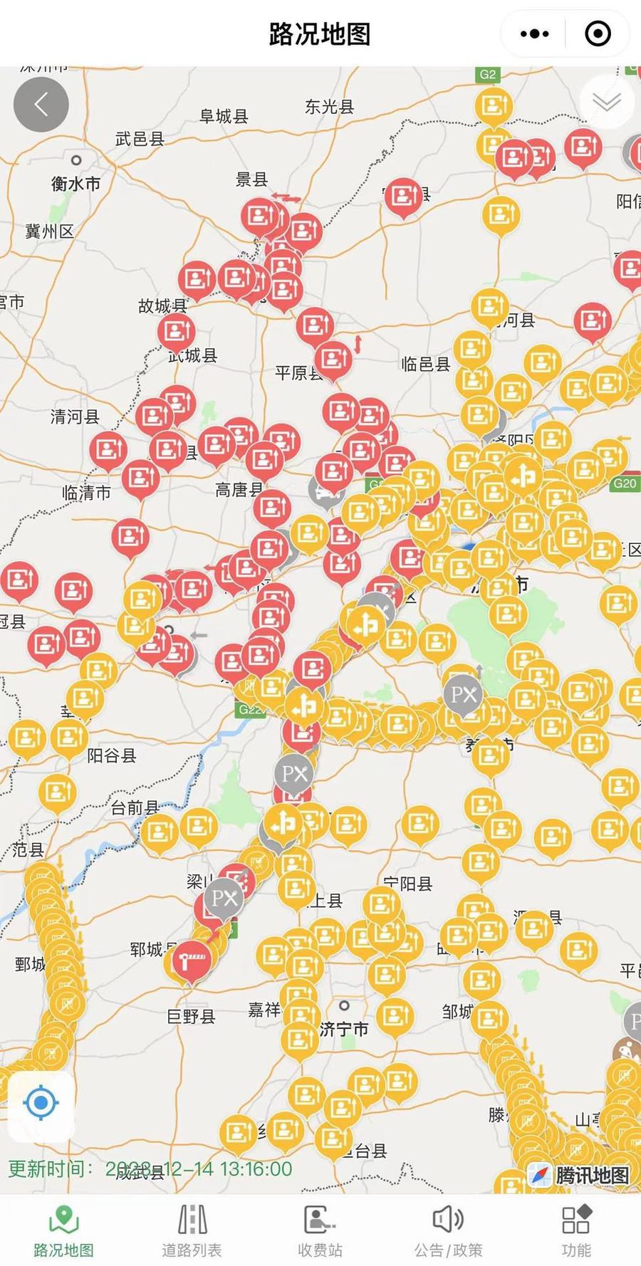 受雨雪天气影响,12月14日,山东省内部分高速公路实行交通管制,齐鲁晚报·齐鲁壹点记者将持续更新最新路况信息。截止到13点25分,山东高速发布如下路况信息:
