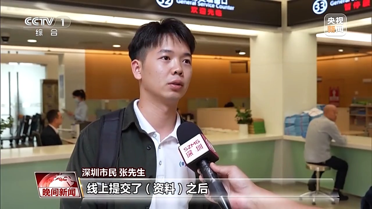 深圳市民 张先生:线上提交了(资料)之后通过了,就可以来这里办理了,而且办理的速度也是非常快,半个小时到一个小时,就可以拿到结果了。