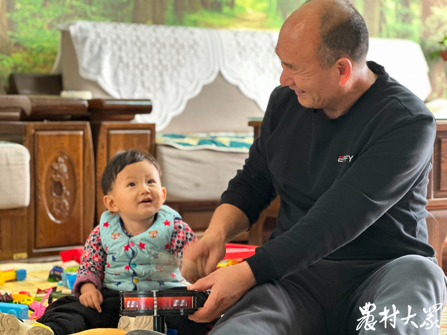 牛玉霞的小外孙刚刚一岁半,在家里穿着小马夹,有些出汗了。