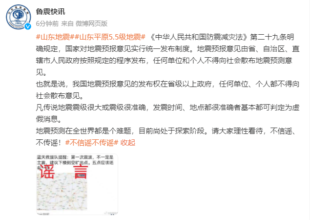 5点还有一次地震?山东省地震局:不信谣不传谣!