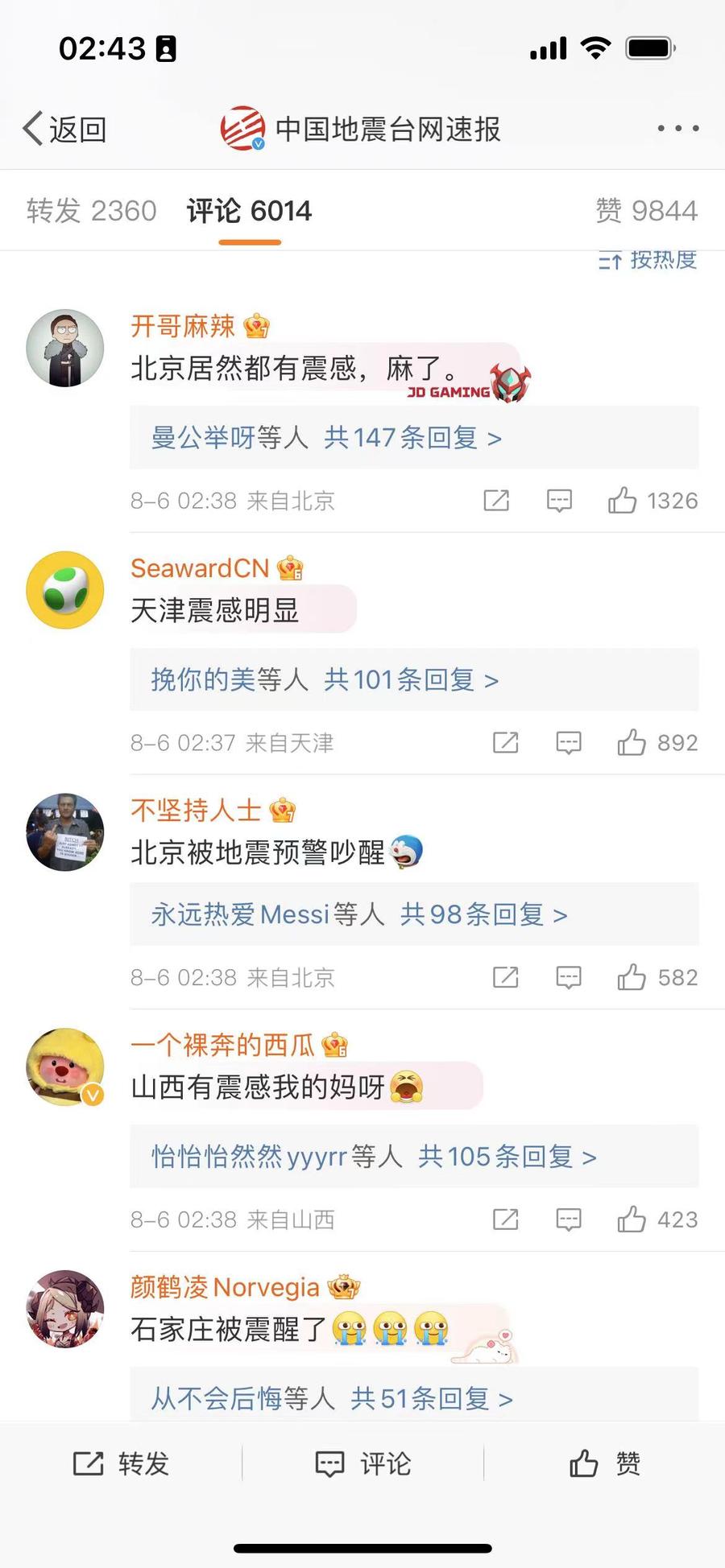【8月6日08:28】山东德州平原县5.5级地震已发生59次余震