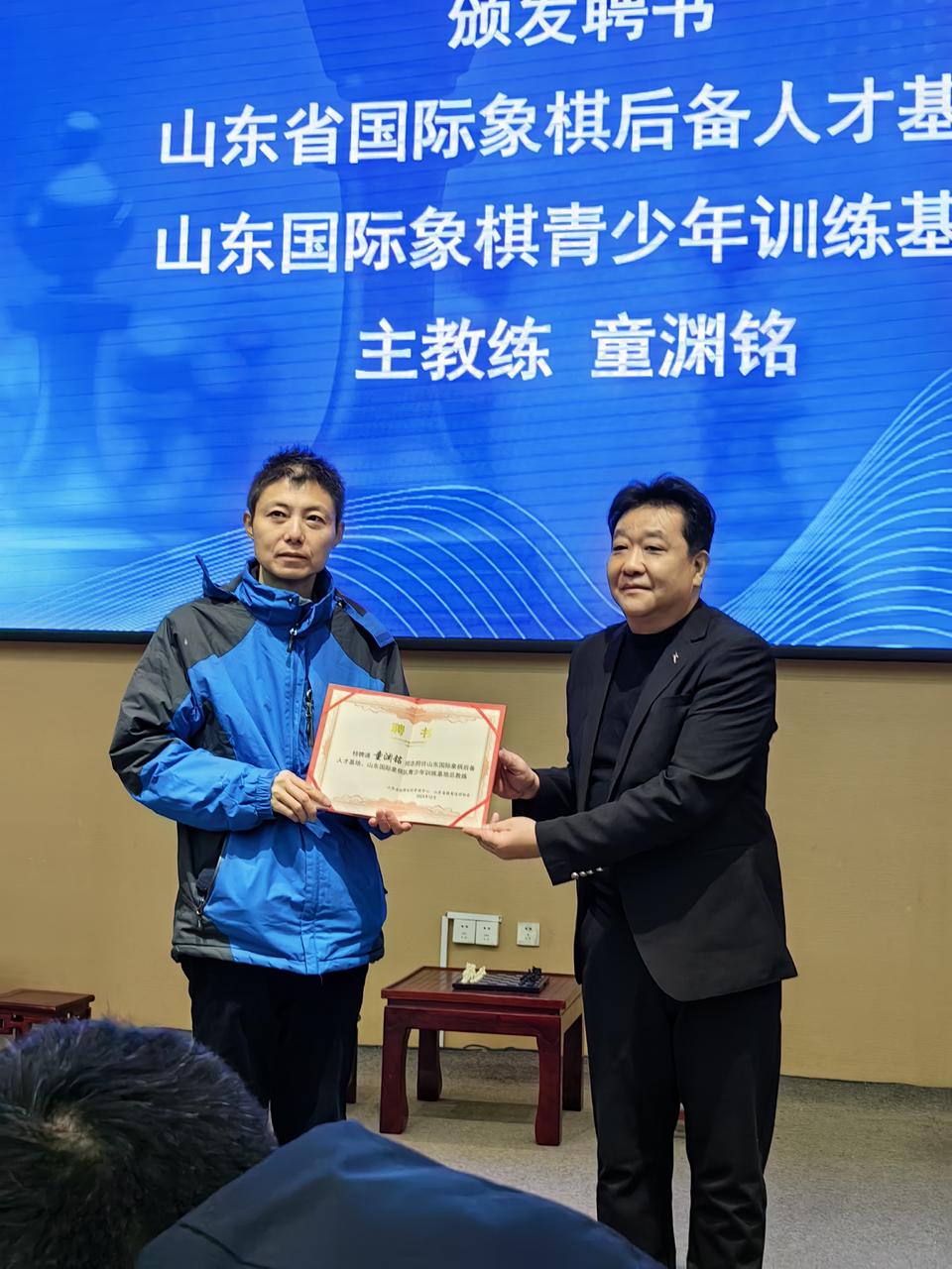 12月15日,“山东省国际象棋后备人才基地、山东国际象棋队青少年训练基地”在潍坊高新区东明中学正式揭牌。著名国际象棋教练、国际大师童渊铭出任两个基地的主教练。此次活动由山东省棋类运动协会、潍坊市体育局主办,齐鲁棋院、潍坊高新区东明学校承办,旨在支持发展山东国际象棋事业,加快培养我省智力运动后备人才。