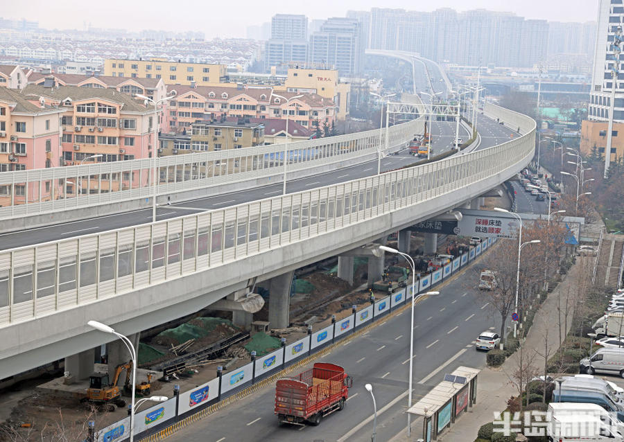 本月底,广大市民关注的一些重点项目将迎来重大进展。其中,“重庆高架路”主线高架已经准备就位,即将实现通车,全线17.7公里行车用时将由50分钟缩短至20分钟。伴随着主线开通日子临近,12月19日,记者再次探访了这条横跨市北、李沧、城阳三区的“巨龙”,高处俯瞰十分壮观。