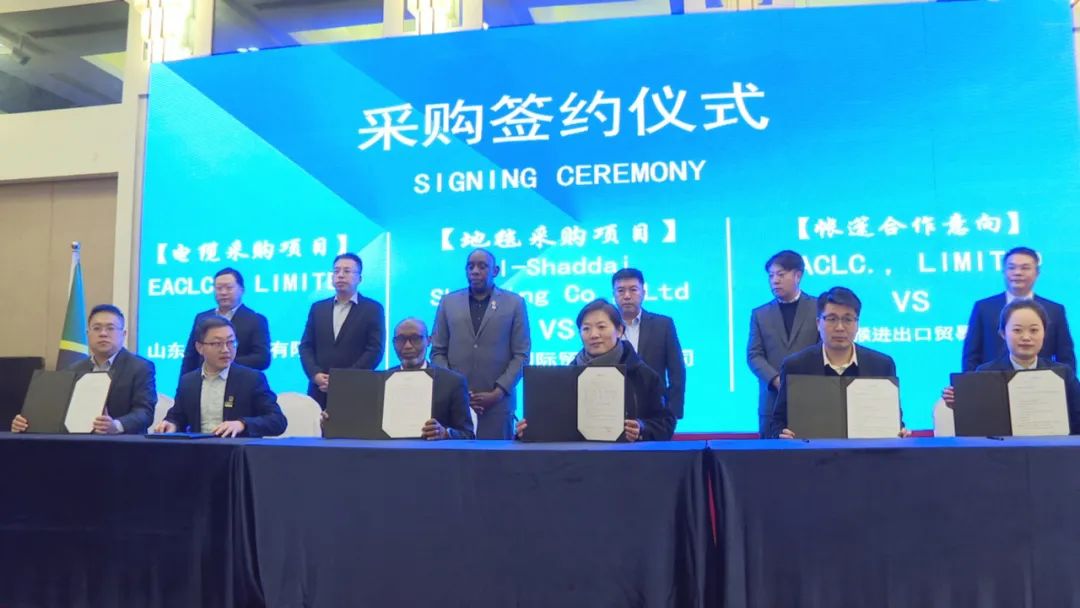会上,重点介绍了东非商贸物流中心情况。期间,山东昆嵛电缆有限公司、威海市金猴进出口贸易有限公司、威海驼露国际贸易有限公司、文登区依达铝合金门窗加工厂、威海蓝星玻璃股份有限公司、威海克莱默自动化设备有限公司6家企业,分别与坦桑尼亚代表团签署了采购合作协议,采购意向金额达2000多万元。