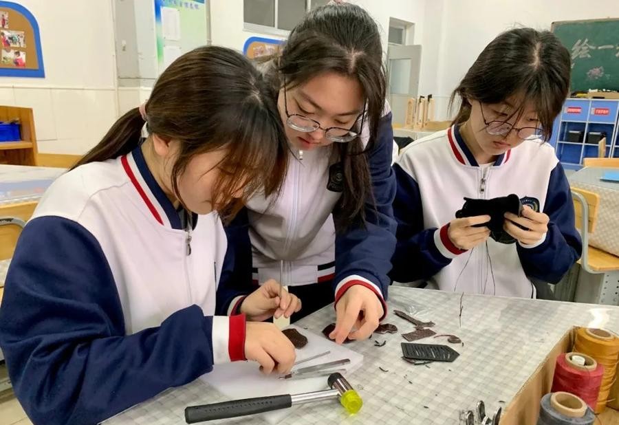 时代在进步,但劳动的育人本色始终不变。王虹霞表示:“考虑到真正的皮具制作过程非常复杂,我们最初先为学生们准备好成品版,由学生进行剪裁和缝合。随着学生掌握一定的技术后,再开始进行创作。在这个过程中,学生们不仅提高了动手能力,也能释放学习压力。接下来,我们计划将匠心皮艺课程与学校信息化特色相结合,让孩子通过电脑进行制版,更好地满足学生多样化需求,丰富学生制作过程的完整性。”