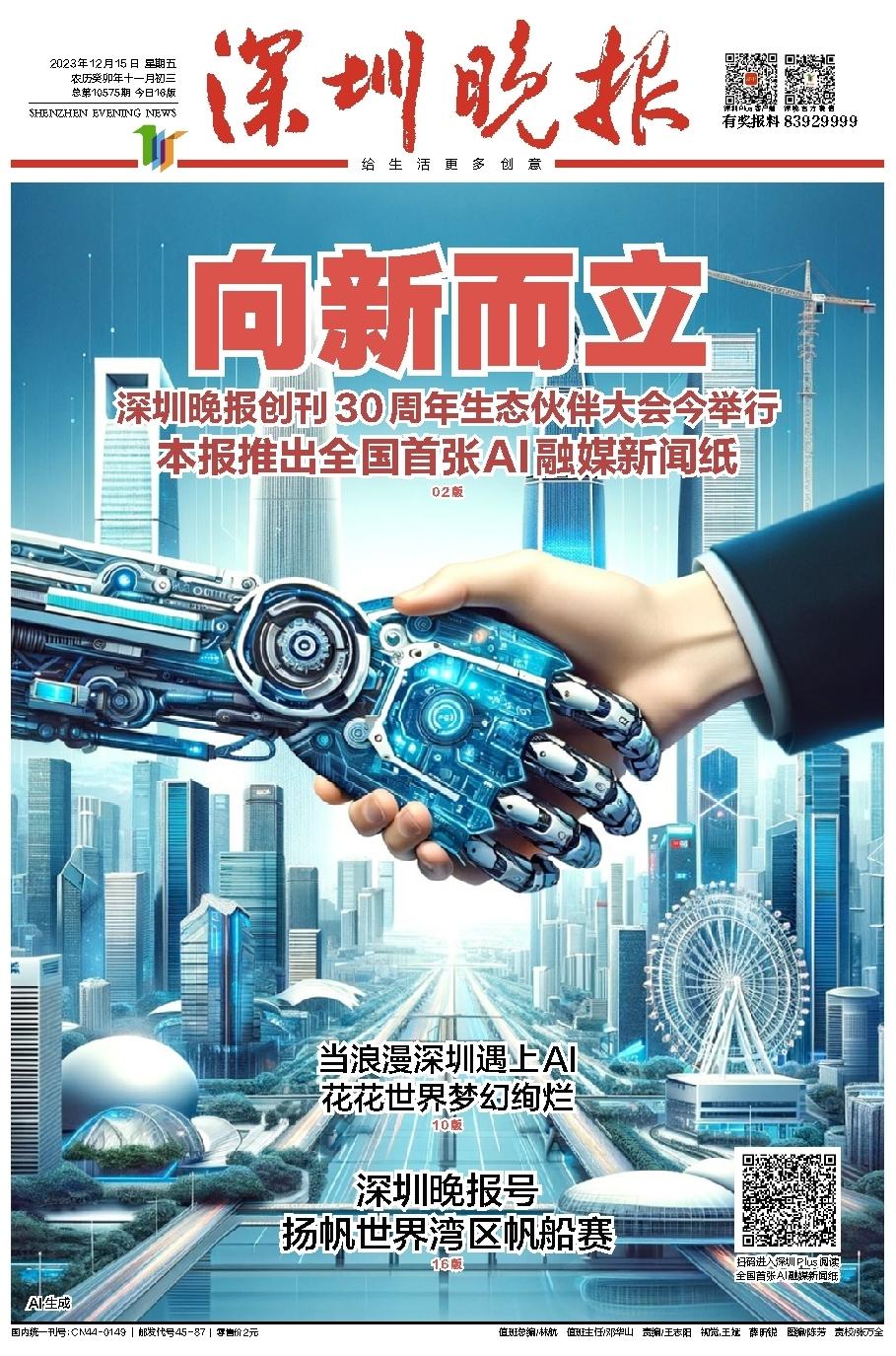 2023年12月15日出版的《深圳晚报》纸质版与以往有所不同,用该报同仁的说法是“首位硅基员工在这家媒体上岗!”“全国首份AI融媒新闻纸来了!”