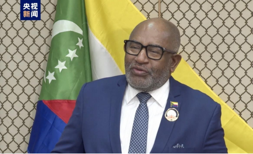 非盟轮值主席、科摩罗总统阿扎利·阿苏马尼。图源:央视新闻