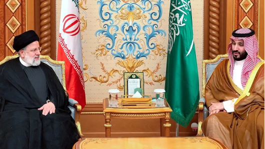 伊朗总统与沙特王储举行恢复外交关系后的首次会面。图源:央视新闻