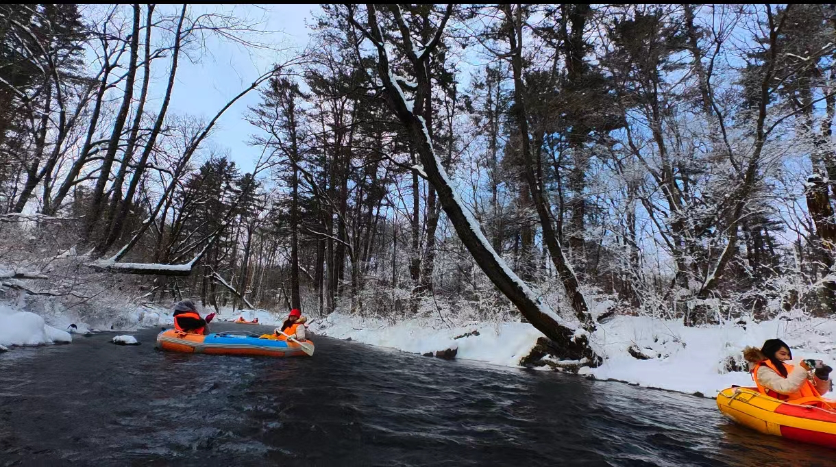 北京来的陈女士和朋友相约一起到长白山天池打卡,但由于当天山顶风大,通往天池的道路被短时间关闭了,“虽然没有登上天池,有点遗憾,但我们体验了雾凇漂流,周围是寂静的,只能听到潺潺的河水声,看着岸边的雾凇,真的太美了。”陈女士告诉澎湃新闻。