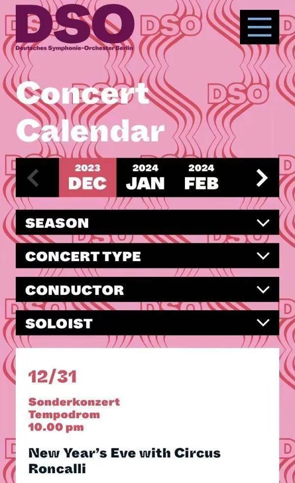 在大麦网上,记者看到“柏林德意志交响乐团”从12月24日起到31日,将在中国举行6场新年音乐会,票价从80元到3000元不等,不过记者登录DSO(Deutsches Symphonie- Orchester Berlin)官网并没有发现该团最近在中国的演出行程。