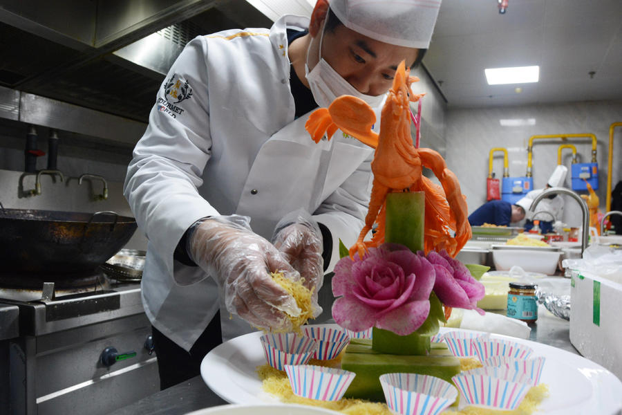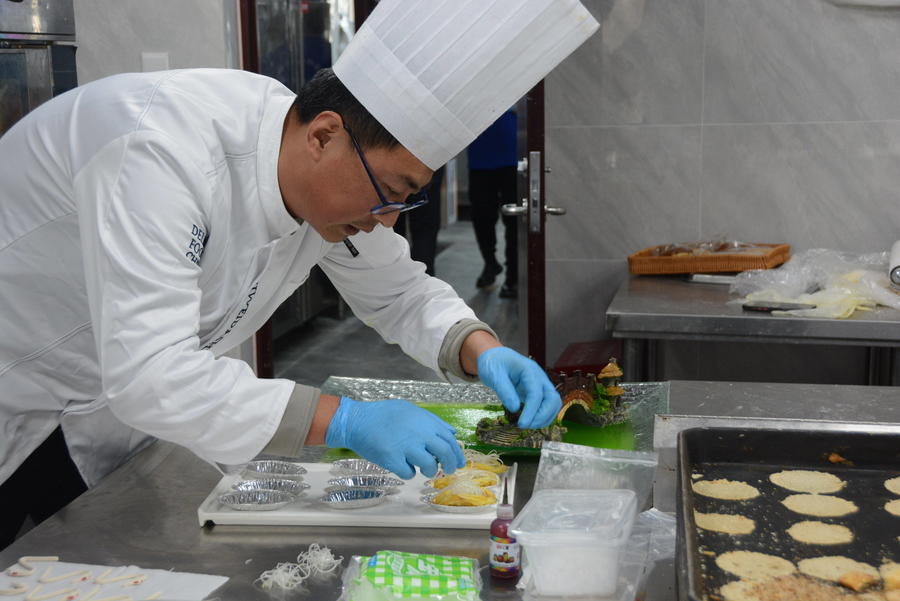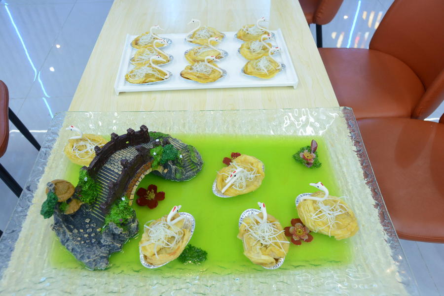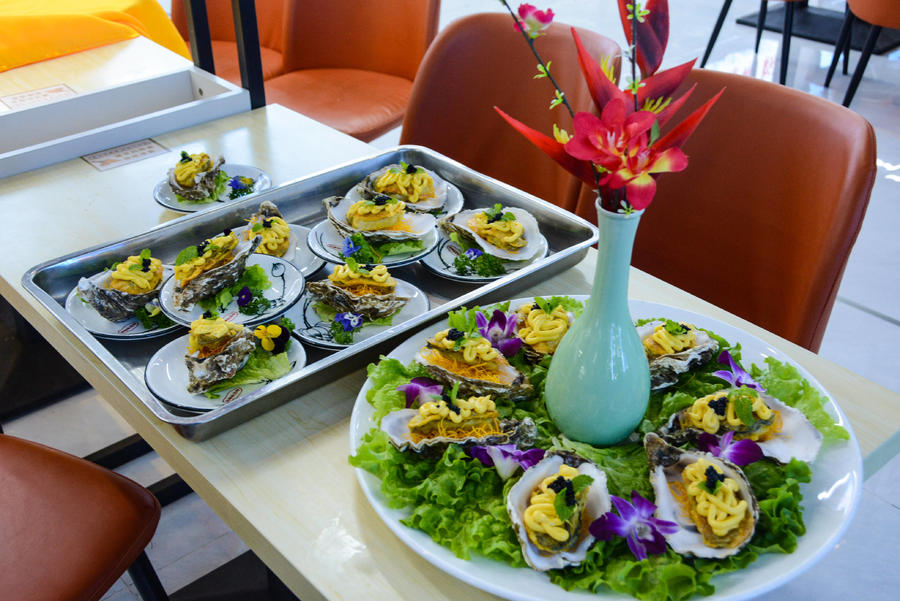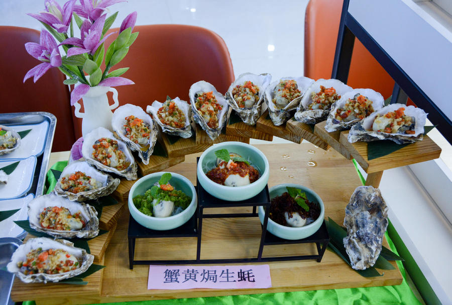 起锅烧油、蒸煮烹炒……大厨们纷纷拿出看家本领,精心烹制自己的特色“蚝”菜。“我们带来的菜品是金丝芥香牡蛎和锡纸鲜椒蛎蝗,金丝芥香牡蛎借鉴了西餐的做法,酥香的金丝包裹着新鲜的牡蛎肉,辅之以秘制酱料,吃起来外酥里嫩,回味无穷。”来自银滩大酒店的厨师长陈豪介绍道。