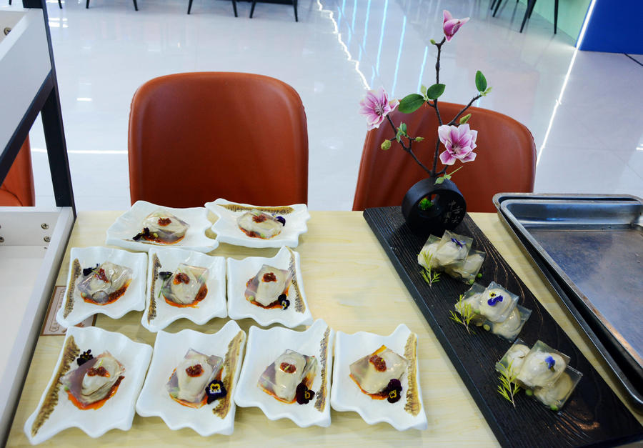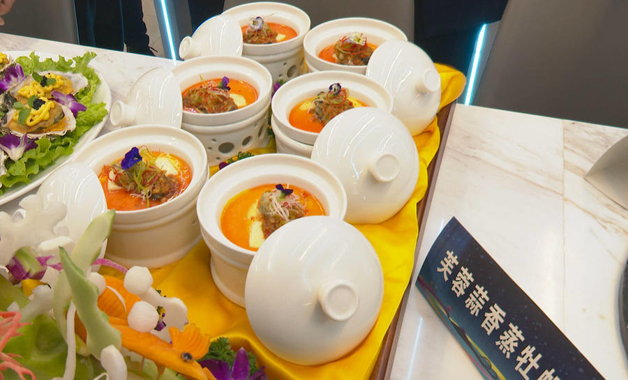 “我们带来的两道菜品分别是甄选玺华蚝冻和捞汁生蚝,蚝冻以新鲜生蚝配以青豆,口感Q弹、清新爽口。捞汁生蚝以新鲜生蚝辅之小米辣,鲜甜爽辣。”华玺大酒店的大厨姜帅说。
