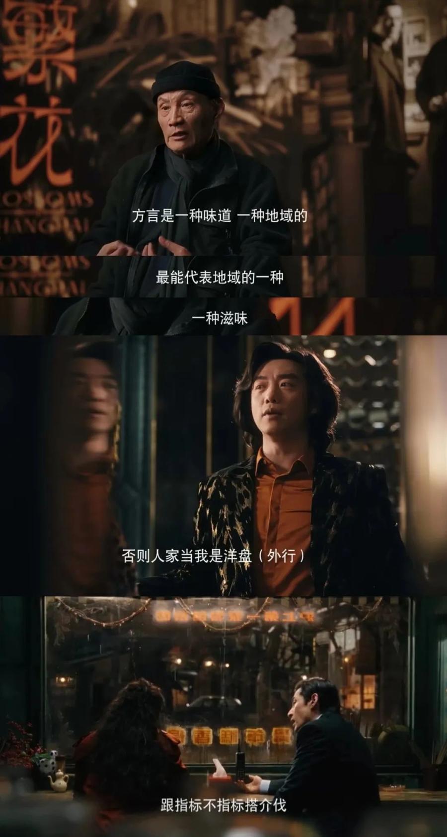 《繁花》不说教,也没什么主张,位置放得很低,常常等于记录,北方话讲,基本是逗哏,捧哏的,牢骚。像这个多元时代的方式,宽容,有序,也很无序。这个状态,确实不只代表上海,代表了城市的某种灵魂,在这类空间里,有大量的说法,讲法,混沌无聊,也有趣。