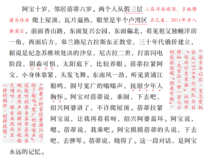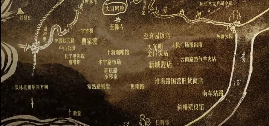 小说中,儿时的阿宝住在思南路,是能看见半个卢湾区的假三层洋房。沪生住在茂名路,小毛住在大自鸣钟,看似这只是路名和地名,实则作者已点出三人的家庭背景。