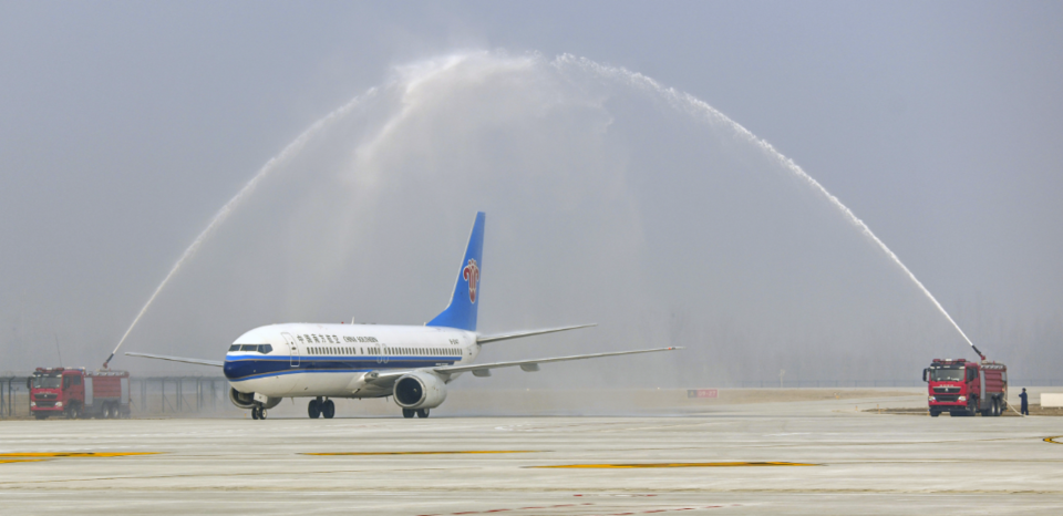 12月28日上午10时46分,由中国南方航空公司执飞的波音737—800航班顺利抵达济宁大安机场,现场以民航界最高礼仪“过水门”仪式迎接首次航班,这标志着济宁大安机场正式开航投运。