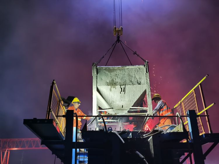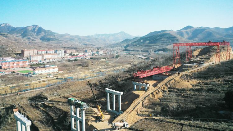 2022年12月,临临高速四标项目博山池上镇大桥首片预制箱梁成功架设。