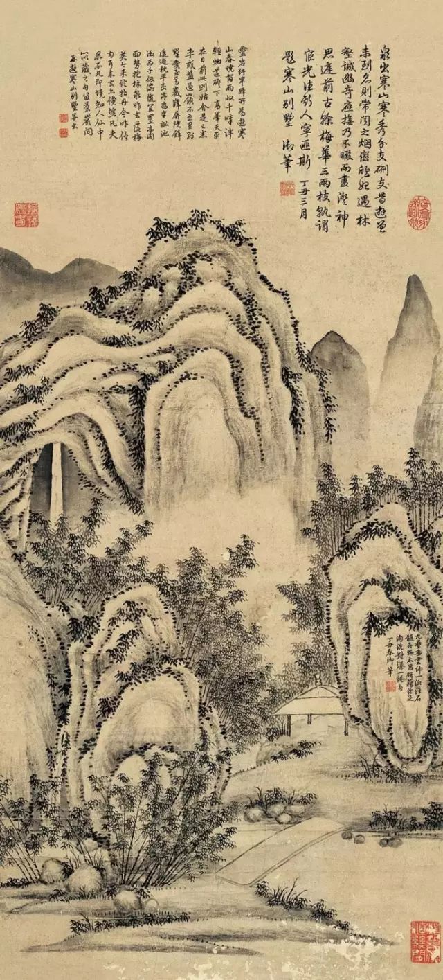 但是,由于乾隆皇帝并无很深的绘画功底,他学画花鸟画时,即使作一幅小画也很吃力。所以,他转向了注重“古意”,而在写实功力上可以适当放松要求的“文人画”。