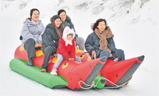 □新华社发 12月30日,游客在烟台市一家滑雪公园玩耍。当日是元旦假期第一天,人们休闲放松,乐享假日。