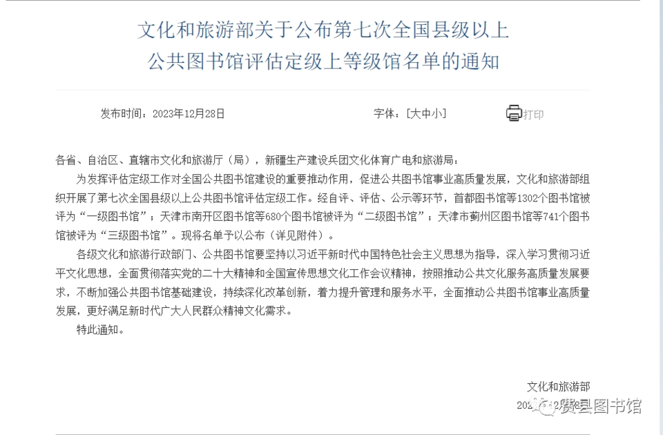 12月28日,文化和旅游部公示全国县级以上公共图书馆评估定级上等级馆最新名单,费县图书馆评获国家一级图书馆!